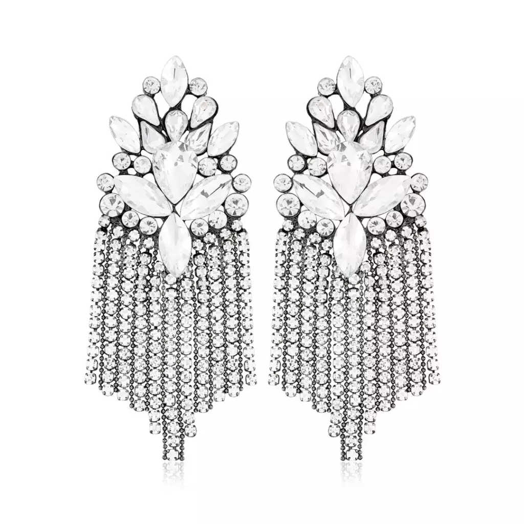 Adicione um toque de glamour à sua coleção de acessórios com o Brinco Franjas Cravejado Coroa Cristal!