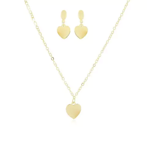 CONJUNTO COLAR E BRINCO COM PINGENTE DE CORAÇÃO FOLHEADO A OURO 18K